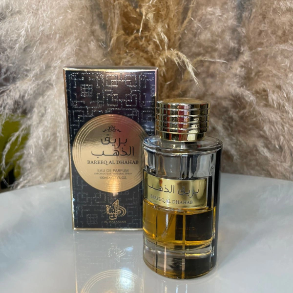Bareeq Al Dhahab de Al Wataniah é um perfume Âmbar Masculino. Esta é uma nova fragrância. Bareeq Al Dhahab foi lançada em 2022. As notas de topo são: Açafrão, Rosa e Pimenta. As notas de coração são: Agarwood (Oud), Caramelo, Notas Florais e Patchouli. As notas de fundo são: Incenso, Âmbar, Almíscar e Notas Amadeiradas.