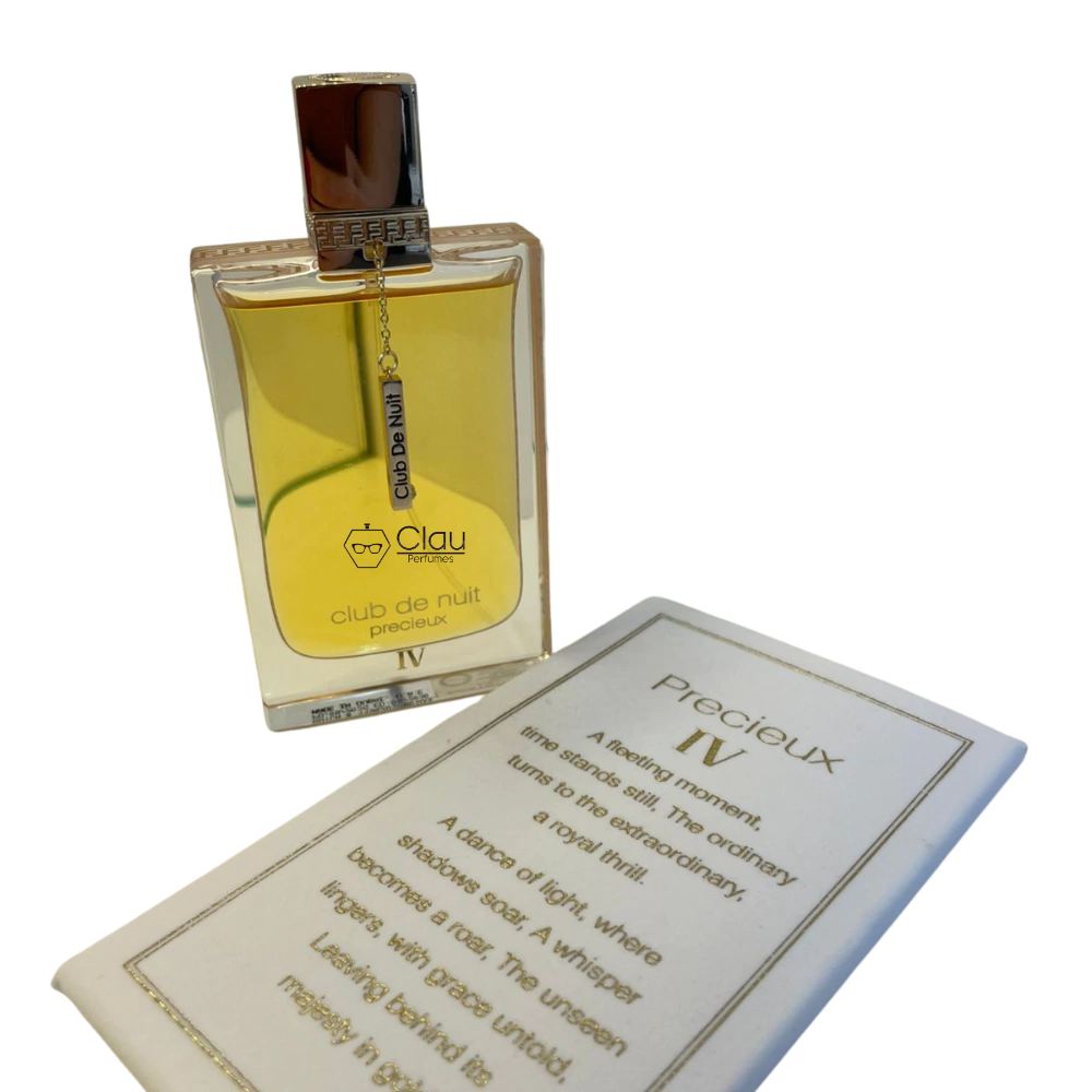 Club de Nuit Precieux IV é um perfume para quem não tem medo de ser notada. Possui uma projeção marcante e uma excelente fixação, características da linha Club de Nuit. É versátil, podendo ser usado em encontros românticos, eventos especiais ou até mesmo para elevar a confiança no dia a dia, especialmente em climas mais amenos.