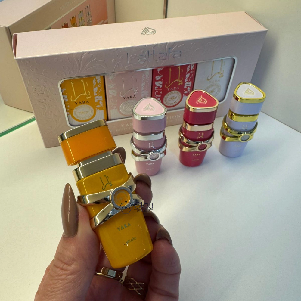 Este kit não é apenas uma forma de descobrir qual frasco grande você irá comprar; ele é a solução. É perfeito para ter na bolsa, para levar em viagens ou simplesmente para poder escolher seu "Yara do dia". É uma viagem deliciosa e viciante pelo universo doce da perfumaria árabe moderna.